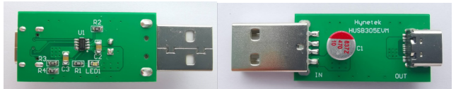 图1和图2分别是HUSB305典型应用电路和HUSB305 demo board照片。