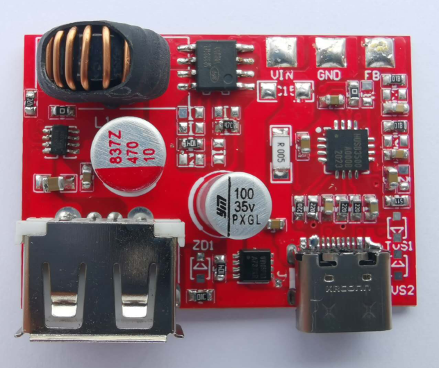 图9. HUSB304和HUSB350搭配的1A1C双口PD参考设计实物图