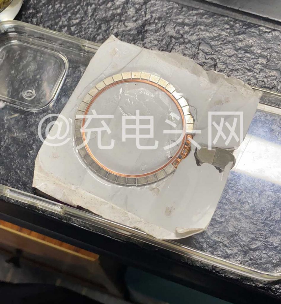 近日,充电头网从供应链获悉,拿到了疑似iPhone 12磁吸无线充和NFC模块,内部磁铁结构首次得到详细曝光。从爆料者提供的图片可见,iPhone 12背面设有一圈磁铁,数量共计36颗,并且采用了磁极交错排布方式进行布局。
