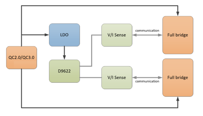 随着人们手边的电子设备越来越多,为两款或多款设备同时充电的用户需求越来越强烈。此外,Type-C接口也越来越火,USB PD快充协议也是大势所趋,逐渐成为主流。对于无线充来说,支持双设备同时无线充电、USB PD快充输入的产品很自然的就有了不小的市场需求。为了满足这一市场需求,贝兰德正式发布“一芯双充”方案D9622。