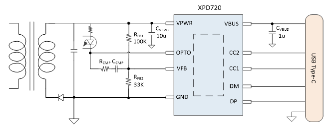 XPD720应用在单个USB端口充电设备,是目前市场上集成度最高的过认证PD产品。XPD720集成了10mΩ VBUS通路功率开关管和10mΩ电流检测电阻,是云矽零外围过认证PD家族的最新一代产品。XPD720的封装兼容前两代产品XPD618和XPD718,无需修改设计,直接升级到20W配置。