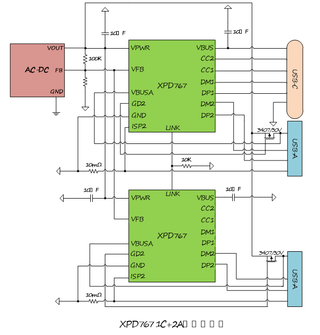 具有XPD-LINKTM互联功能的XPD737和XPD767也迎来升级,支持苹果20W配置。对于多端口充电设备,例如1C2A共享20W,XPD767提供了最优的解决方案。