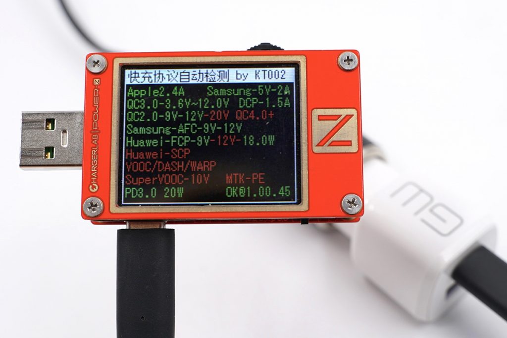 POWER-Z KT002 USB测试仪对USB-C口进行快充协议轮询,支持PD3.0、APPLE2.4A、QC3.0、QC2.0、AFC、FCP等常见的快充协议,可以为市面上大部分数码产品提供快充支持。