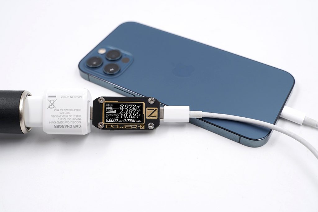 USB-C支持20W输出,实测为iPhone 12充电功率达到8.97V 2.18A 19.62W,成功握手iPhone 12 20W快充,满足30分钟充入50%的性能需求,为iPhone 12快速恢复电量。