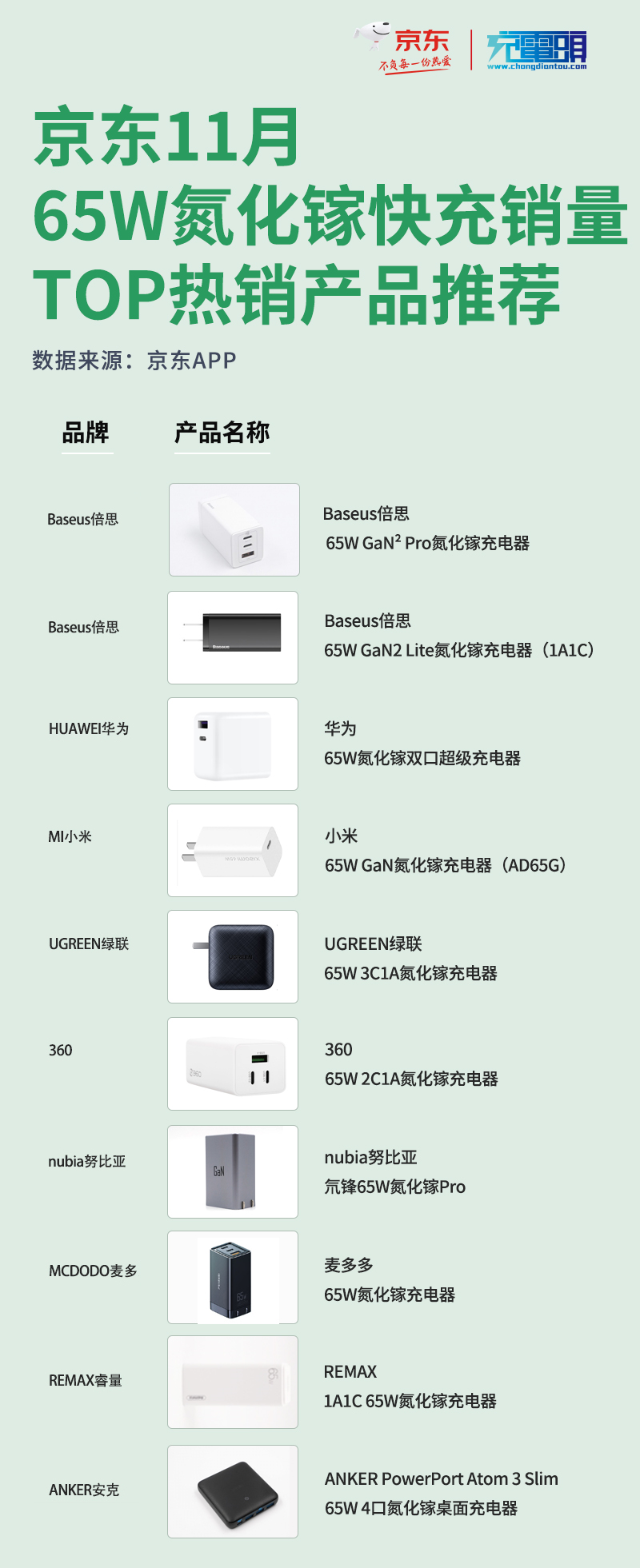 消费电子这两大最重要的市场发展都利好氮化镓充电器的发展,值此行业盛况,我们自然不能错过,于是京东联合充电头网发布氮化镓充电器销量排行榜。需要说明的是排行榜数据来自京东APP11月销量数据,纯排行,无广告。