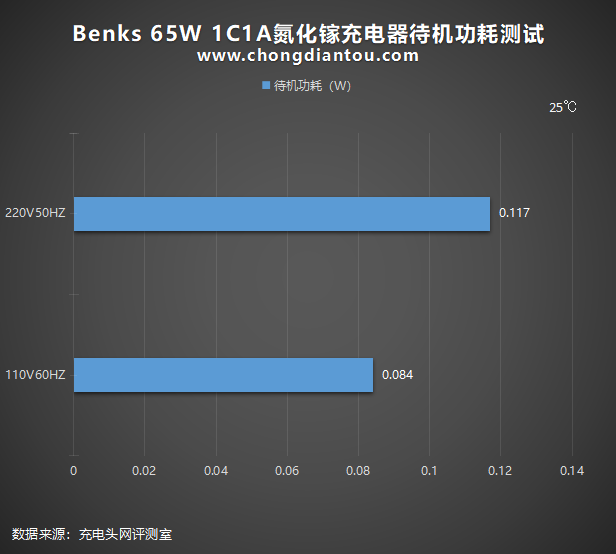 经过功率计测试,Benks 65W 1C1A氮化镓充电器在220V 50Hz的空载功耗为0.117W,换算下来一年损耗的电能约为1.02KW·h,若市价电为0.6元/KW·h,则充电器一年的空载功耗约为0.6元左右。