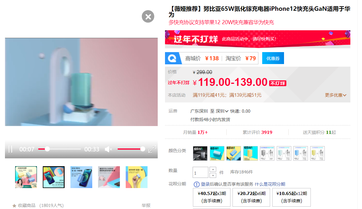 那就是努比亚65W氮化镓。开播五分钟卖出1.5W台。