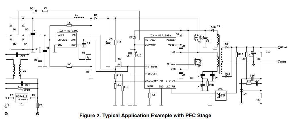 安森美NCP13992采用SO-16无铅封装,在适配器中可搭配PFC级,由PFC级将输入升压并进行功率因数校正输出,NCP13992进行LLC电压转换。