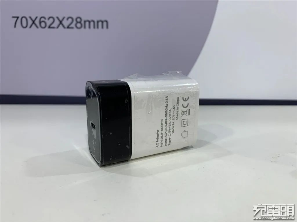 这款充电器的型号为PD-051,支持AC 110-240V 50/60Hz 0.8A的宽幅电压输入,并支持USB PD3.0输出,电压档位为5V/3A、9V/3A、12V/2.5A、15V/2A、20V/1.5A。