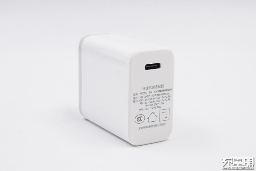华科隆30W PD充电器采用纯白色外观设计,外壳表面烤漆,非常光滑,配备固定式插脚并通过了CCC认证。支持USB PD快充输出,并有5V、9V、12V、15V、20V五个固定电压档位,同时还支持3.3-5.9V 3A、3.3-11V 3A两组PPS电压输出,不仅可兼容iPhone、华为、小米、三星等品牌的旗舰手机快充,也可以适配部分小功率笔记本电脑。