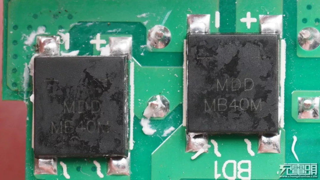 整流桥堆由四只整流二极管组成,在充电器中,整流桥起到将交流输入整流成可以被开关电源所使用的高压直流输出的作用。整流桥的可靠性直接决定着充电器的使用寿命,可以说整流桥相当于充电器的一道门,对充电器的质量来说非常重要。