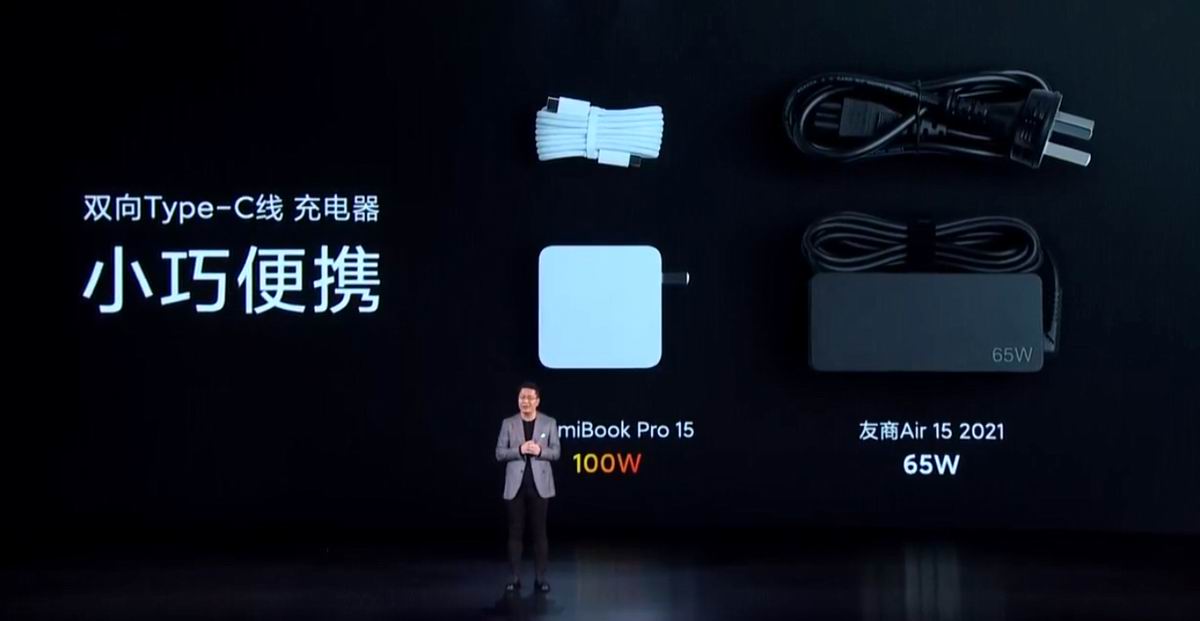 充电器方面,RedmiBook Pro配套了折叠脚100W PD充电器,USB-C输出口搭配USB-C to USB-C数据线,相比起传统大黑砖不管是尺寸还是重量都大幅度下降,还支持对其他PD设备充电。