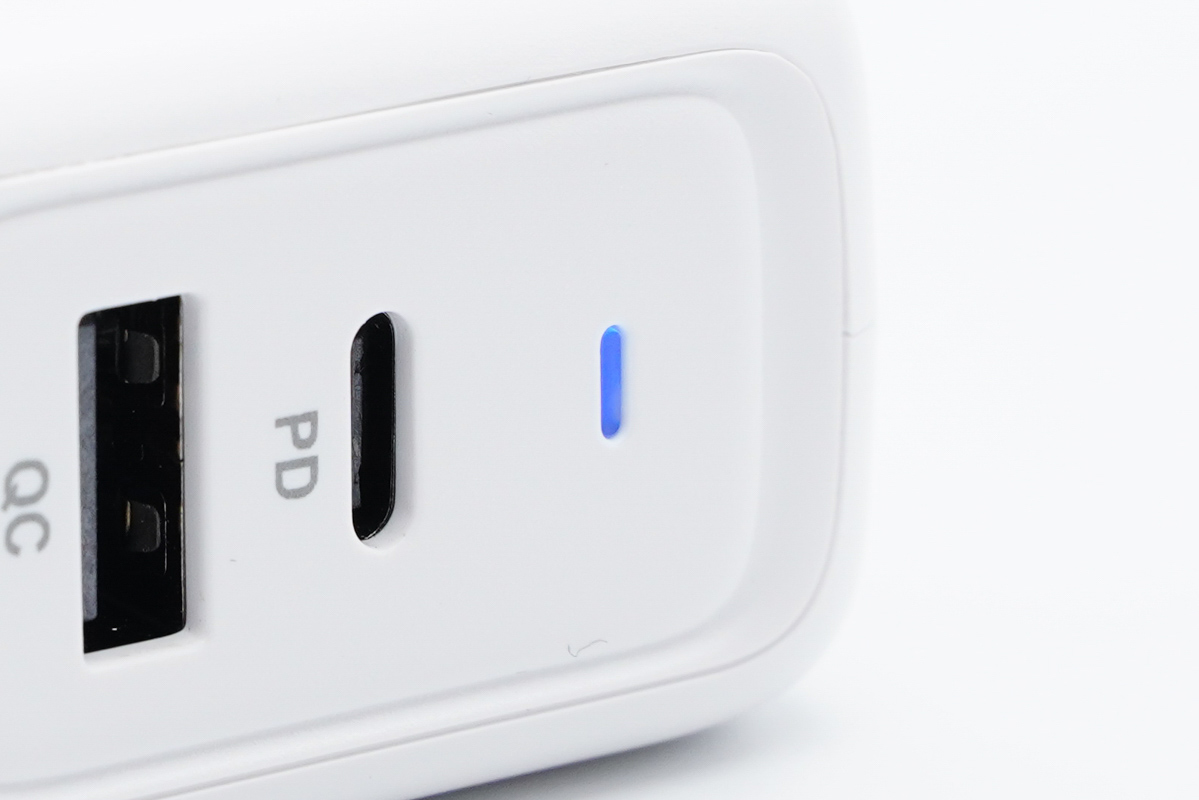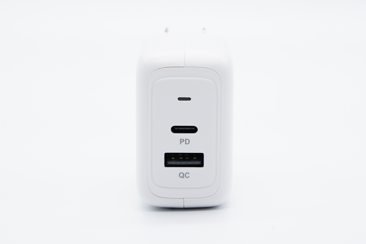 充电器采用PC阻燃材质白色外壳,表面全部磨砂处理,机身边角过渡圆润,整体体积非常小同时设计十分简洁。