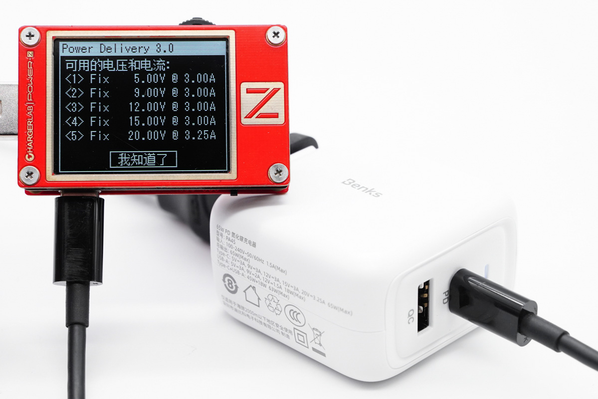 此外PDO报文显示USB-C口还具备5V3A、9V3A、12V3A、15V3A、20V3.25A五组固定电压档位。