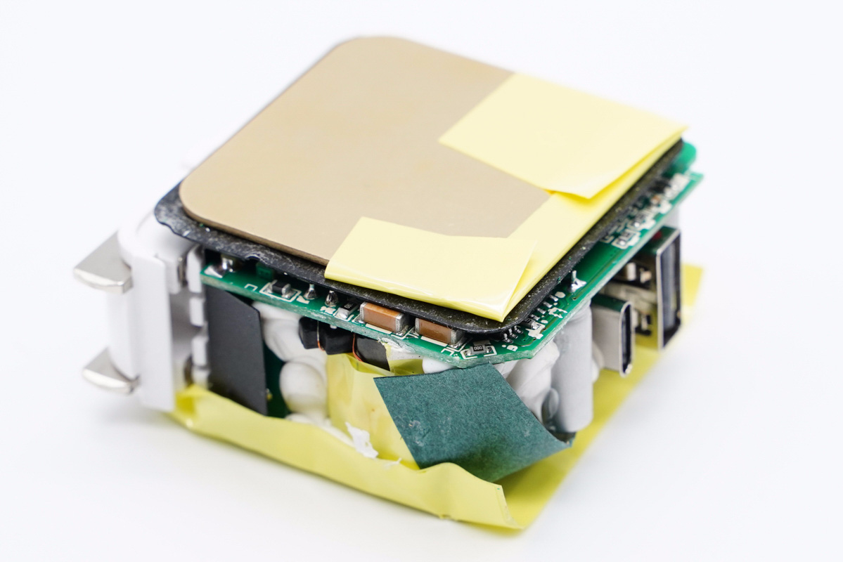 产品另一大特点便是体积非常小巧,作为一款65W级多口充电器,竟比苹果30W充电器还要小,加上配备可折叠插脚,非常便携。下面充电头网就对其进行详细拆解,一起来看看充电器内部是如何设计的。