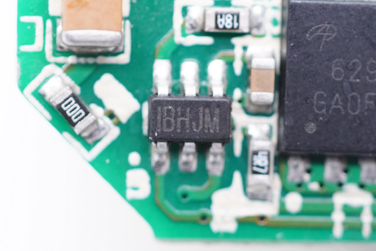 丝印IBHJM次级同步整流控制器,实际型号为MP6908A,来自MPS芯源半导体,最高工作频率600KHz,支持DCM,CCM和QR以及ACF工作模式,支持标准电压和逻辑电压驱动的同步整流管。