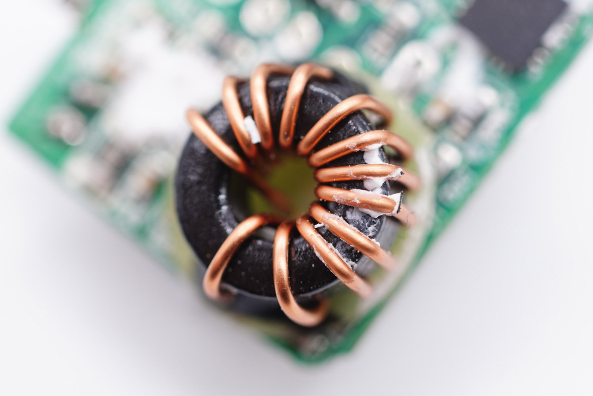 降压电感特写,下面采用绝缘板与电路板之间绝缘,十分可靠。