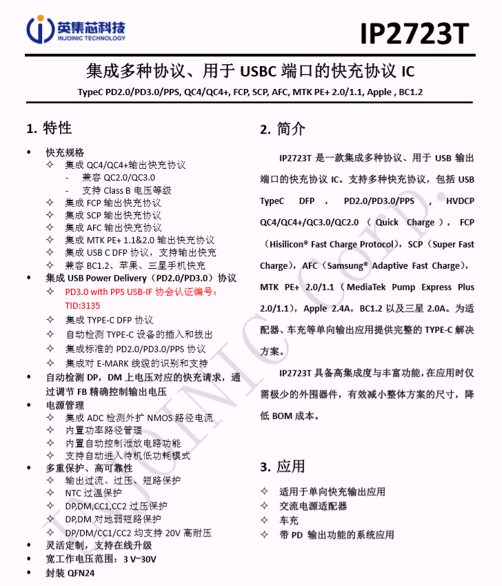 此外IP2723T具备高集成度与丰富功能,在应用时仅需极少的外围器件,有效减小整体方案的尺寸,降低BOM成本。