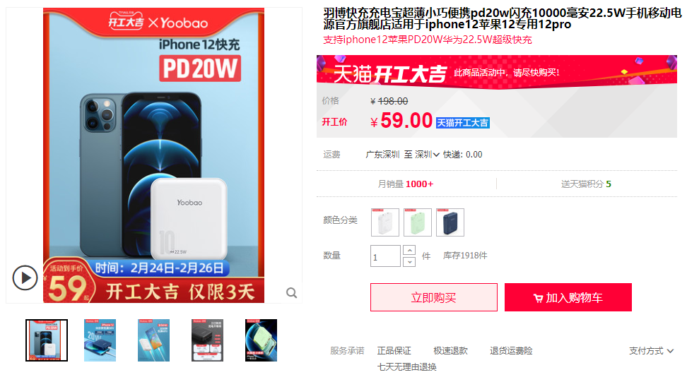 iPhone 12的充电功率升级到20W,羽博这款20W充电宝就是专为iPhone 12设计,半小时充入60%电量;10000mAh大容量,最少充满两次吧;而且体积非常小巧,据称仅为iPhone 12的一半大小。