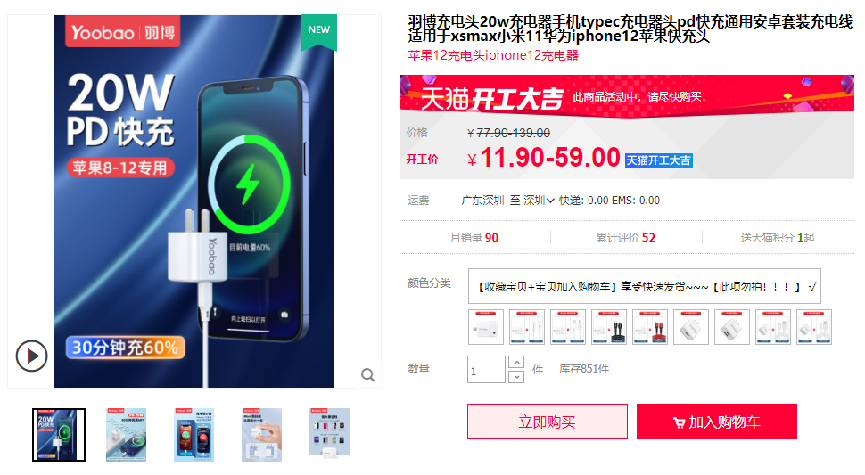 羽博20W PD充电器机身圆润小巧,充分满足消费者对小体积的要求同时使用上又有不错的手感,输入端配备的是主流固定式插脚。与上面的20W充电宝一样,羽博20W PD充电器同样支持半小时为iPhone 12充入60%的电量,更向下兼容,从iPhone 8到iPhone 12的快充全部支持。