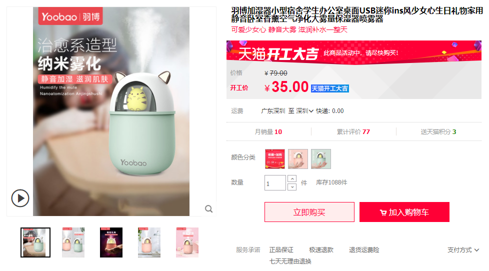 另一特色是文案动人。“1杯水=3张面膜”,只要是女生,看到这句话只会买买买。因为好的面膜真的很贵,加湿器确实可以湿润空气,某种意义上可以少敷点面膜。