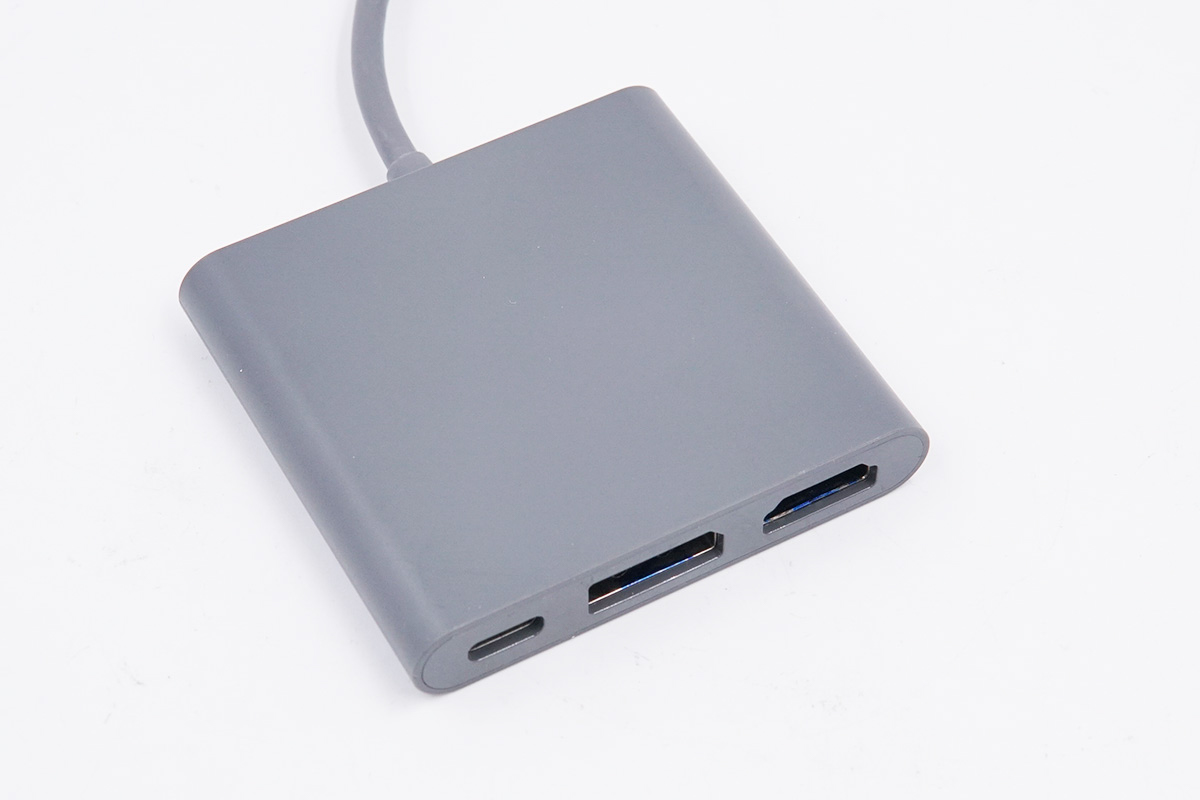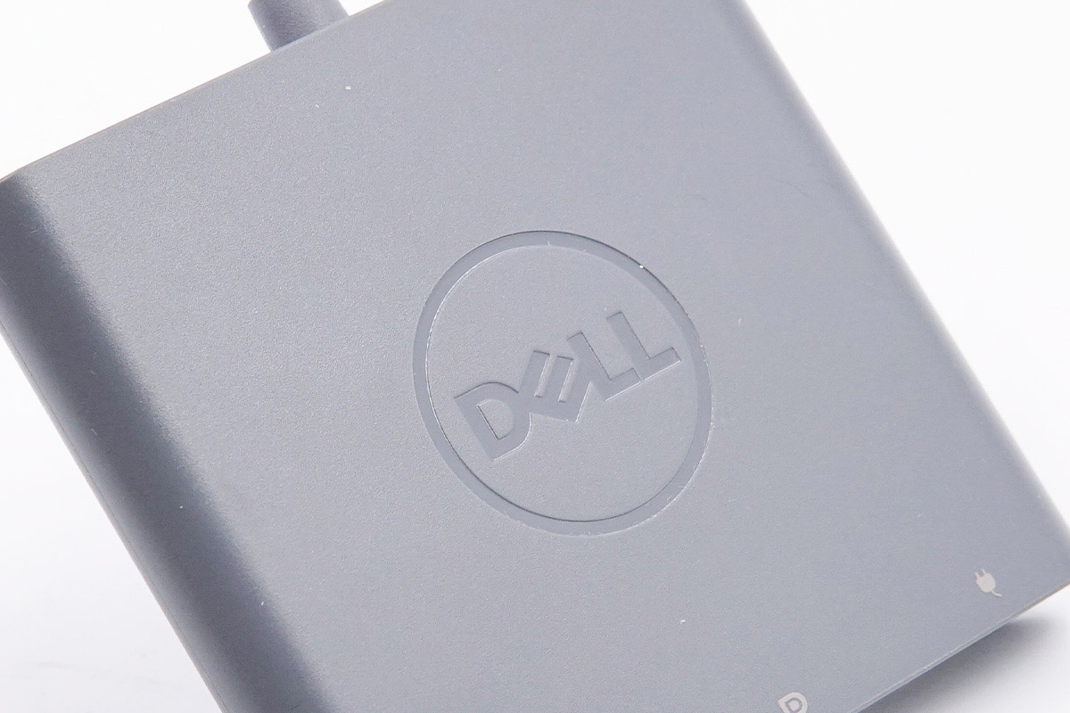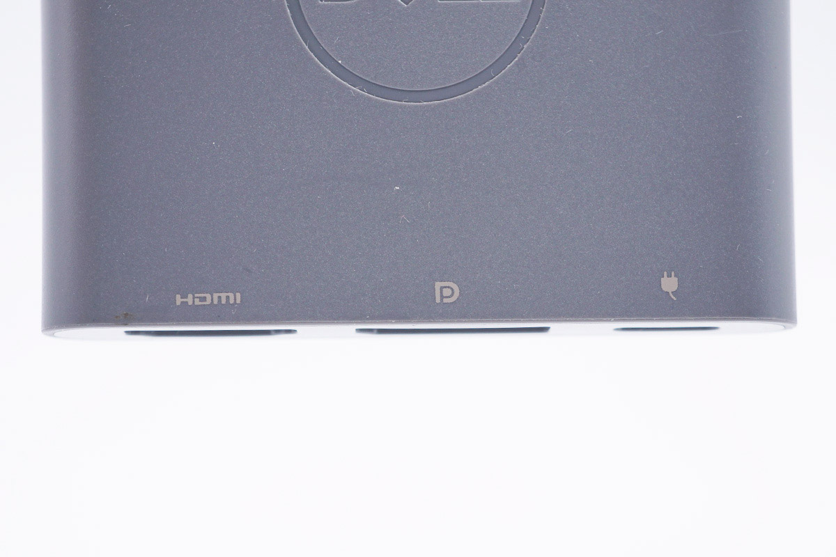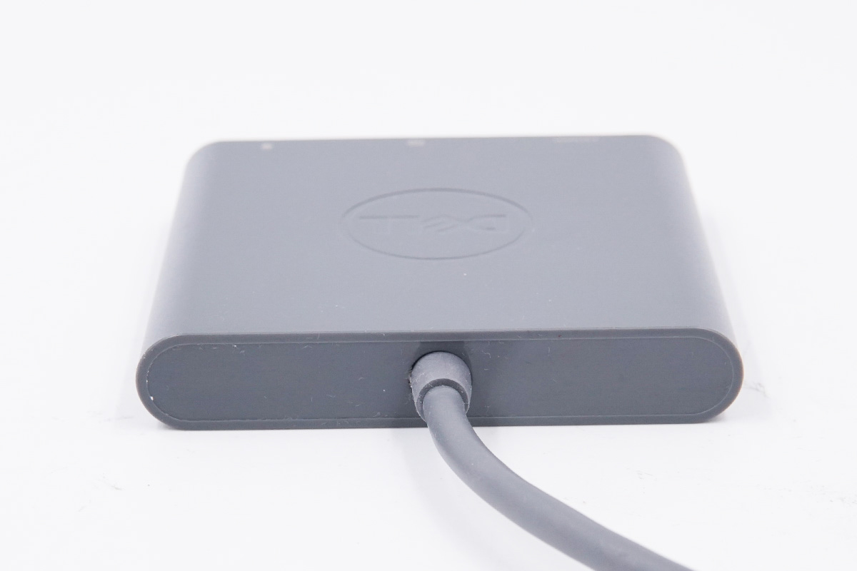 戴尔这款三合一扩展坞自带USB-C线缆,机身带线整体呈灰色,此外机身方正扁平,体积非常的小,携带起来很方便。