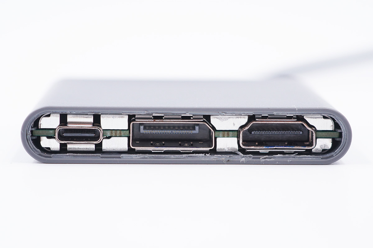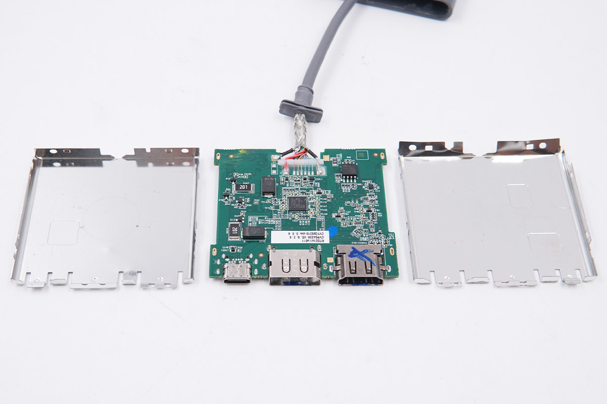 DELL戴尔这款三合一扩展坞机身扁平且自带USB-C线缆,小巧轻便易使用,外出可满足笔记本的日常活动需求。充电头网通过拆解了解到,扩展坞内部使用了赛普拉斯和万代AOS等知名厂家芯片,用料扎实,PCB板上有金属壳覆盖,保护性更强。