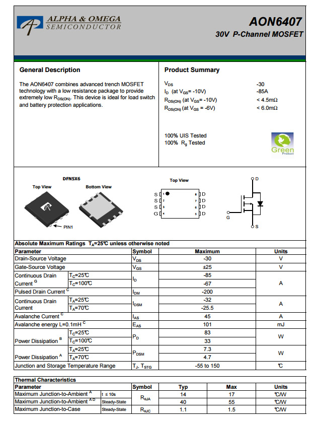 万代AON6407资料信息。