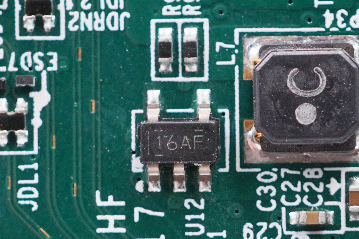 TI TLV62569 2A同步整流降压转换器,右侧有一颗电感用于降压。