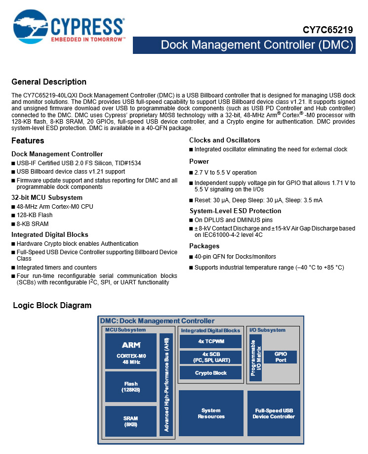 赛普拉斯 CY7C65219-40LQXI 详细资料。