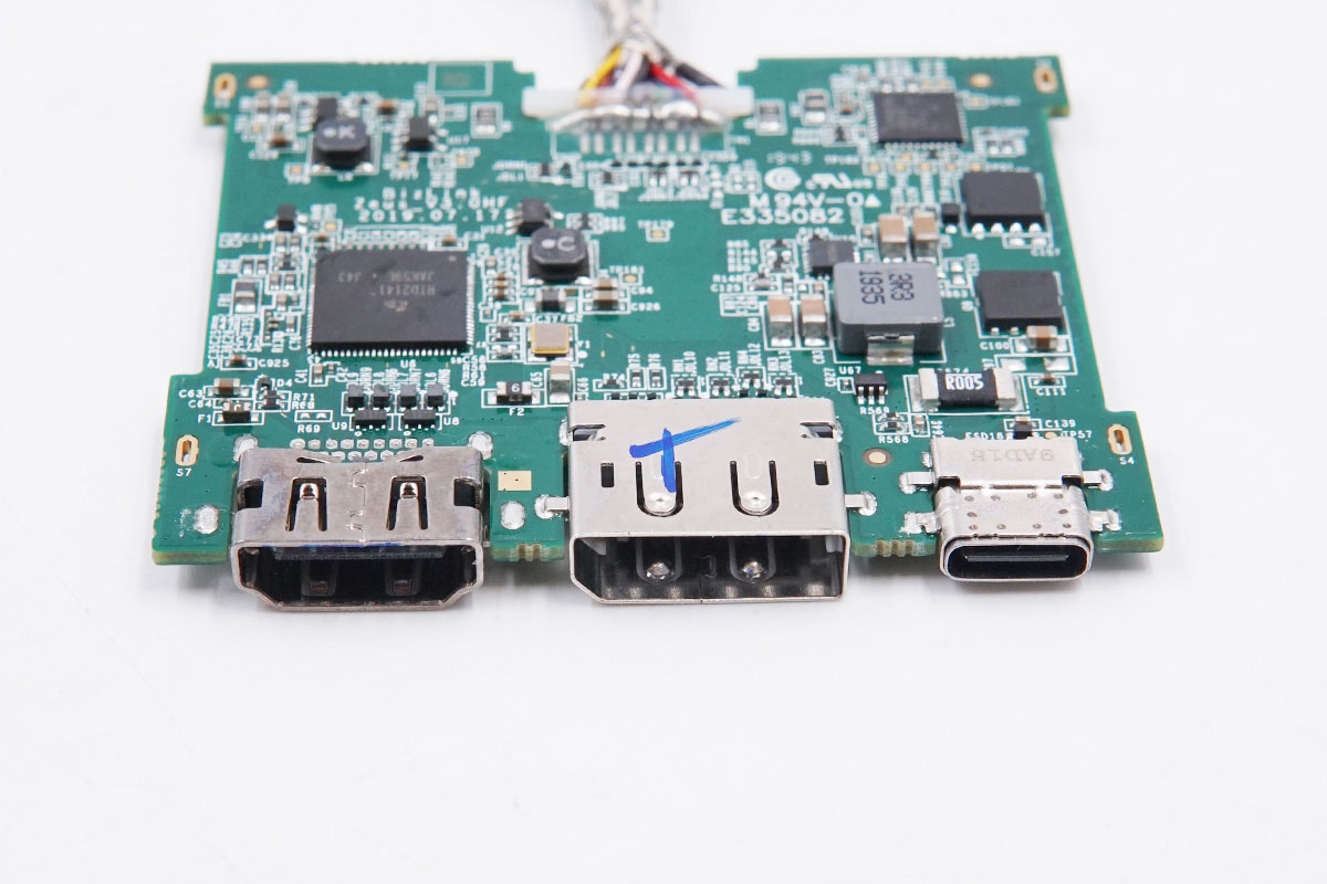 三个接口母座均为沉板过孔焊接,以降低机身厚度。