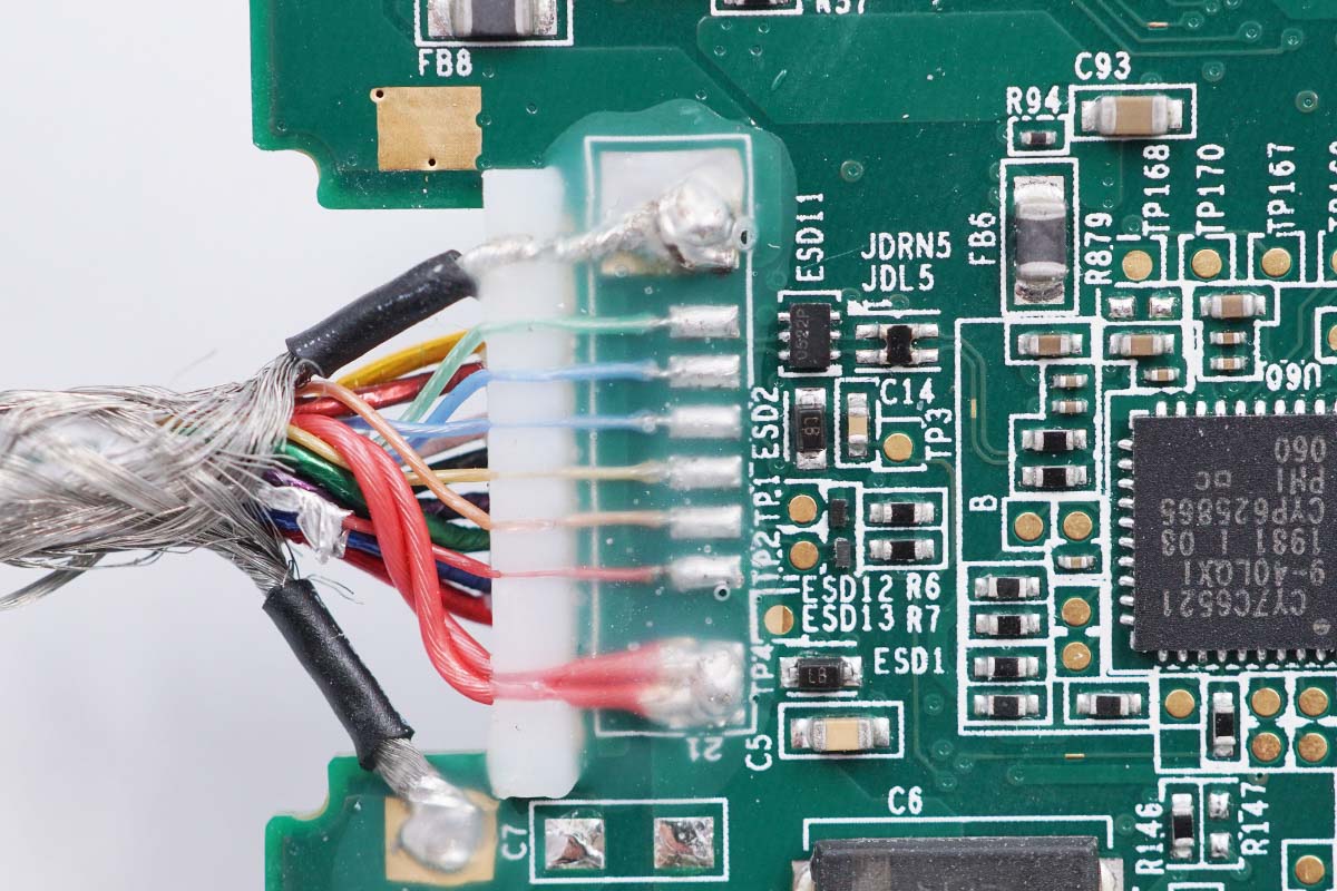 线芯焊接处注塑保护,线芯整齐排列焊接焊点饱满。
