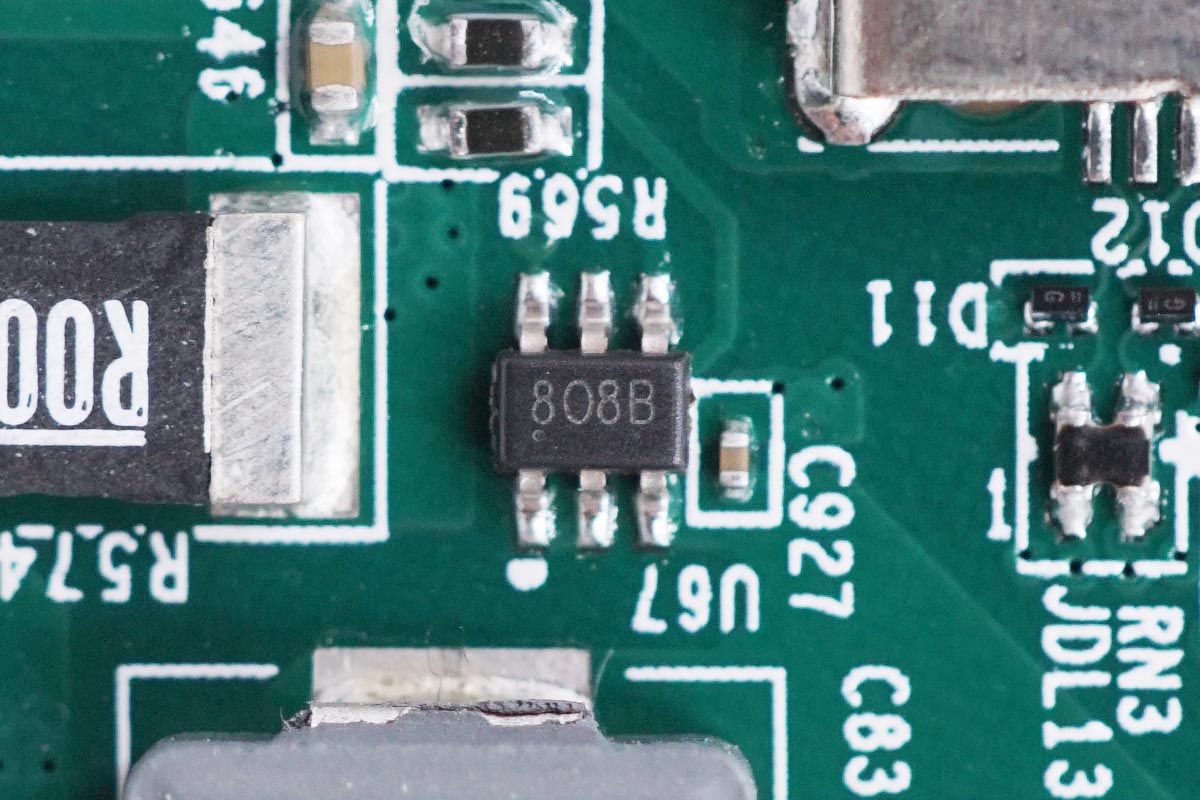丝印808B六脚芯片。