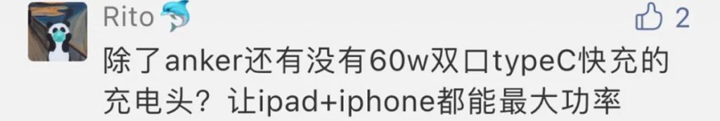 8、除了Anker还有没有60W双C口的头?充iPad+iPhone都能最大功率。