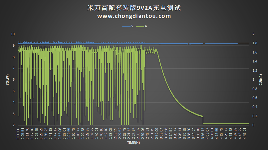 无论是5V、9V还是12V充电,电压保持平稳,电流波动较大,与内部使用的方案有关,具体等拆解。