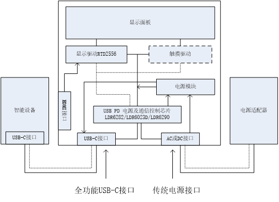 图4单USB-C接口台式显示器的接口控制芯片LDR6282/LDR6290/LDR6023D