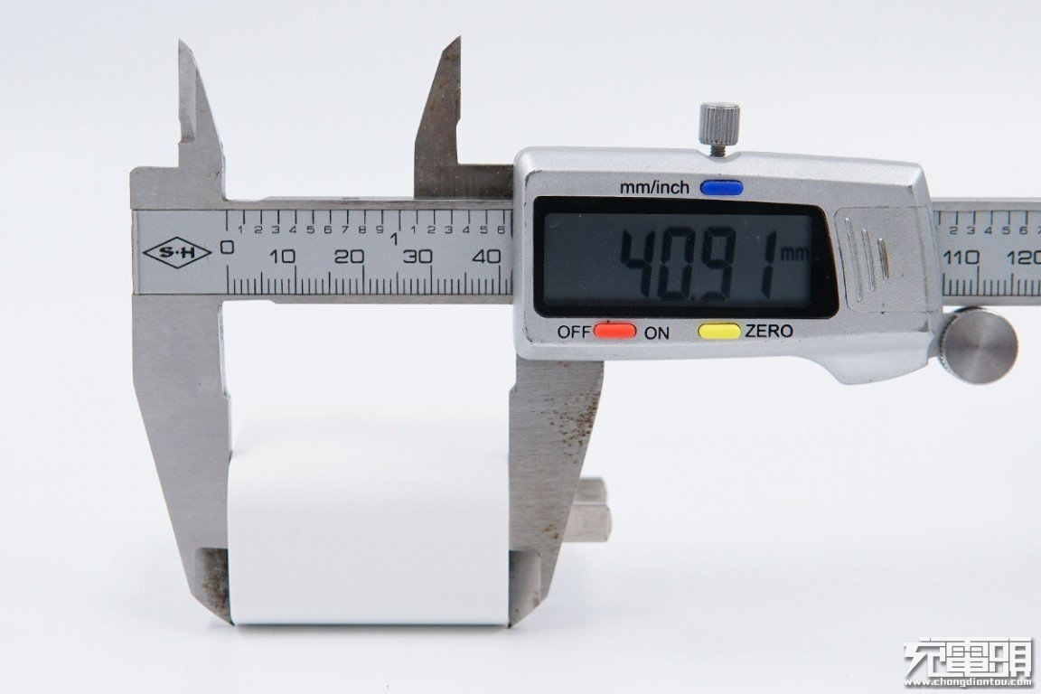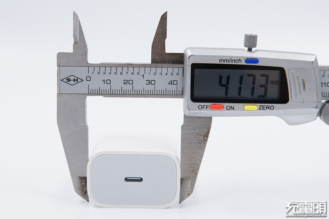 使用卡尺测量充电器宽度为41.73mm。