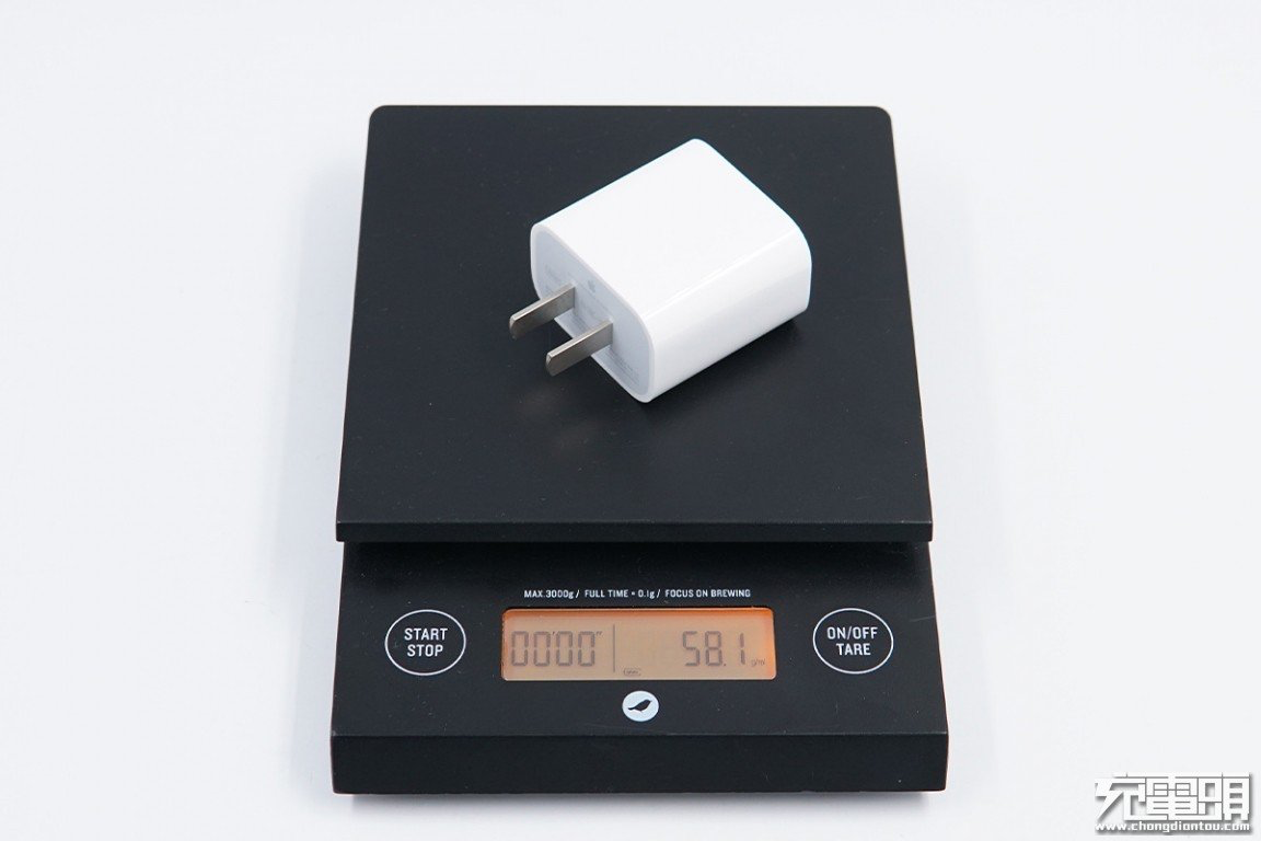 苹果20W PD快充净重约为58.1g。