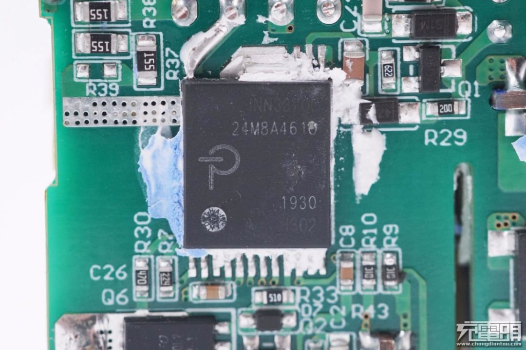 PI INN3379C采用PowiGaN技术,内置PWM控制器、高压MOS、同步整流控制器等,集成度非常高,并且采用数字总线控制调压。宽电压范围条件下,密闭外壳内可以输出65W功率。