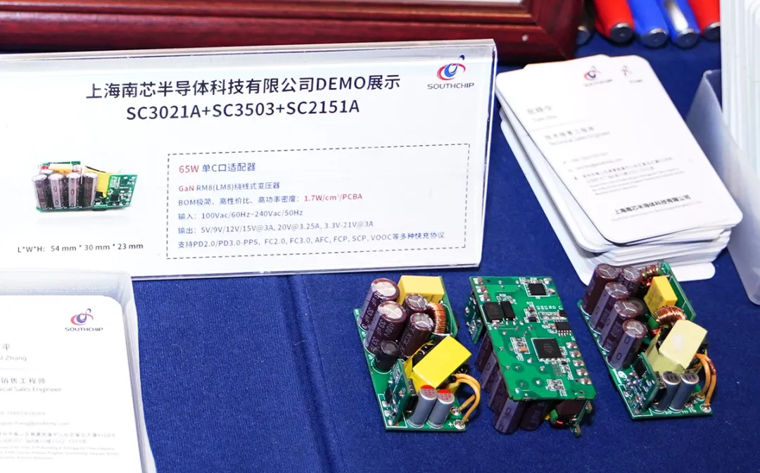 基于南芯SC3021A+SC3503+SC2151A方案开发的65W单口绕线变压器氮化镓快充方案,PCB板尺寸可做到54*30*23mm,功率密度达1.7W/cm³,具有BOM极简、高性价比、高功率密度等特点。并且支持PD、PPS、AFC、FCP、SCP、VOOC等快充协议,具备5V3A、9V3A、12V3A、15V3A、20V3.25A和3A PPS电压档位。