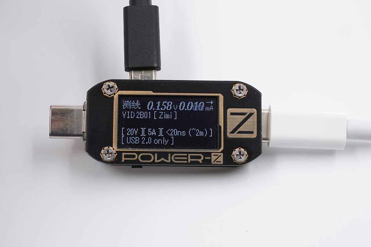 使用POWER-Z KM001C读取线材的信息,线材支持20V5A 100W的快充功率,此外线材还支持数据传输,传输标准为USB2.0 。