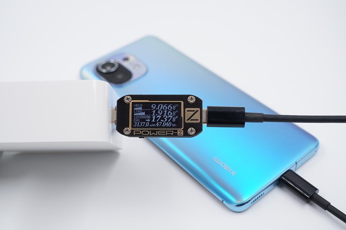 使用充电器为小米11充电,功率为9.06V 1.91A 17.37W,此时处于PD快速充电状态。