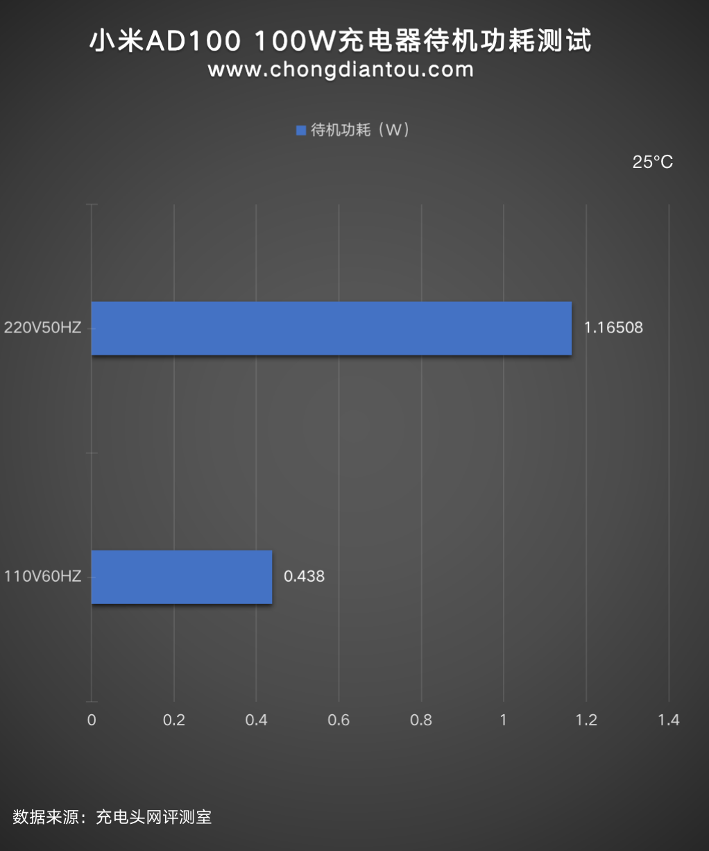 经过功率计测试,小米100W充电器在220V 50Hz的空载功耗为0.13W,换算下来一年损耗的电能约为1.16KW·h,若市价电为0.6元/KW·h,则充电器一年的空载功耗约为0.69元左右。