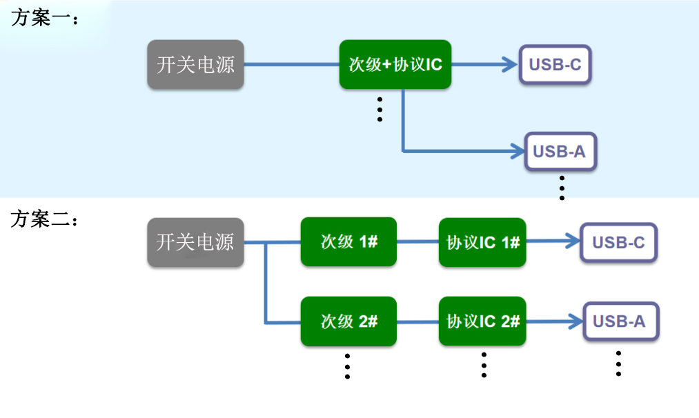 现有业内知名芯片厂商智融科技和英集芯均已推出适用于多口快充的高集成快充芯片,用一颗芯片实现了传统方案中多颗芯片才能完成的功能,极大减少了芯片数量,有利于缩充电器体积和降低BOM成本,做到极致性价比。