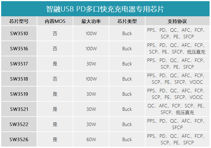 目前智融已经针对多口USB PD快充市场推出了SW3510、
