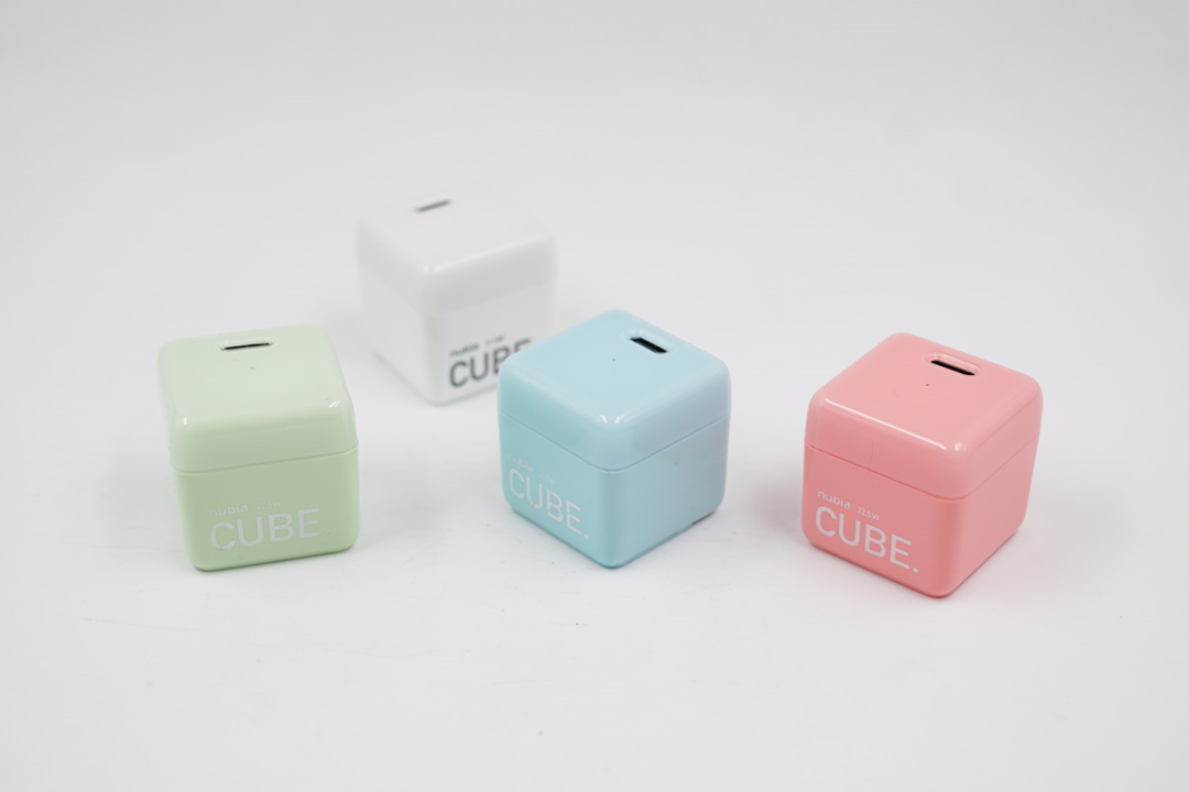 nubia方糖快充共有四色可选,分别是奶油白,抹茶绿,草莓粉,薄荷蓝,在侧面印有“nubia 22.5W CUBE”字眼作为点缀,非常Fashion。
