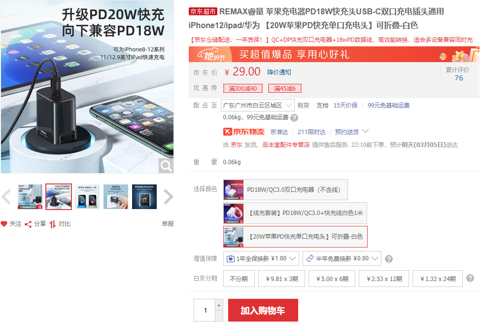 REMAX 20W PD充电器 https://u.jd.com/uogMAcD