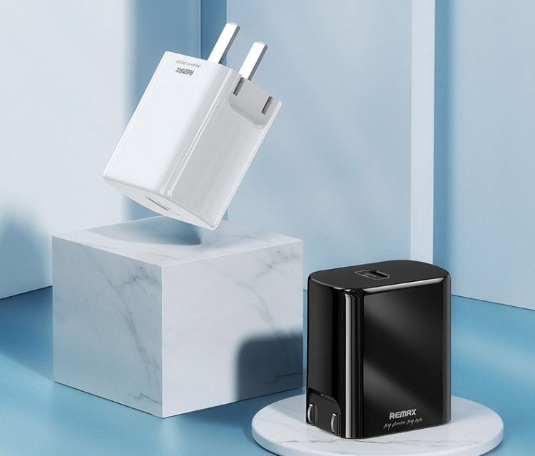REMAX 20W PD充电器有黑白两种经典颜色,整体圆润,手感应该不错。充电器三围尺寸约为45* 28 * 43mm,属于主流水准。而且采用可折叠插脚,方便外出携带。