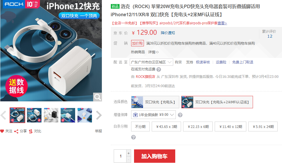 ROCK 1A1C 20W PD充电器 https://u.jd.com/ukgKZ1S