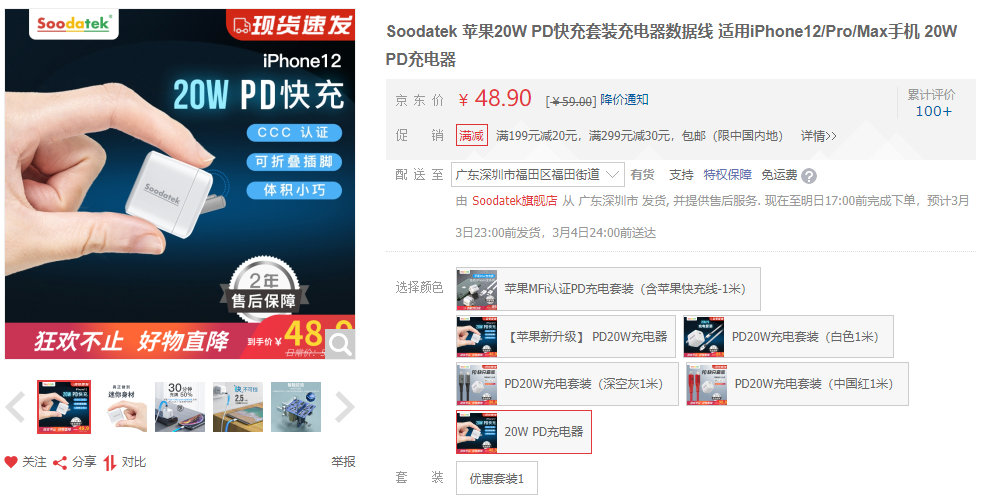 Soodatek 苹果20W PD快充 https://u.jd.com/u3gwCHH